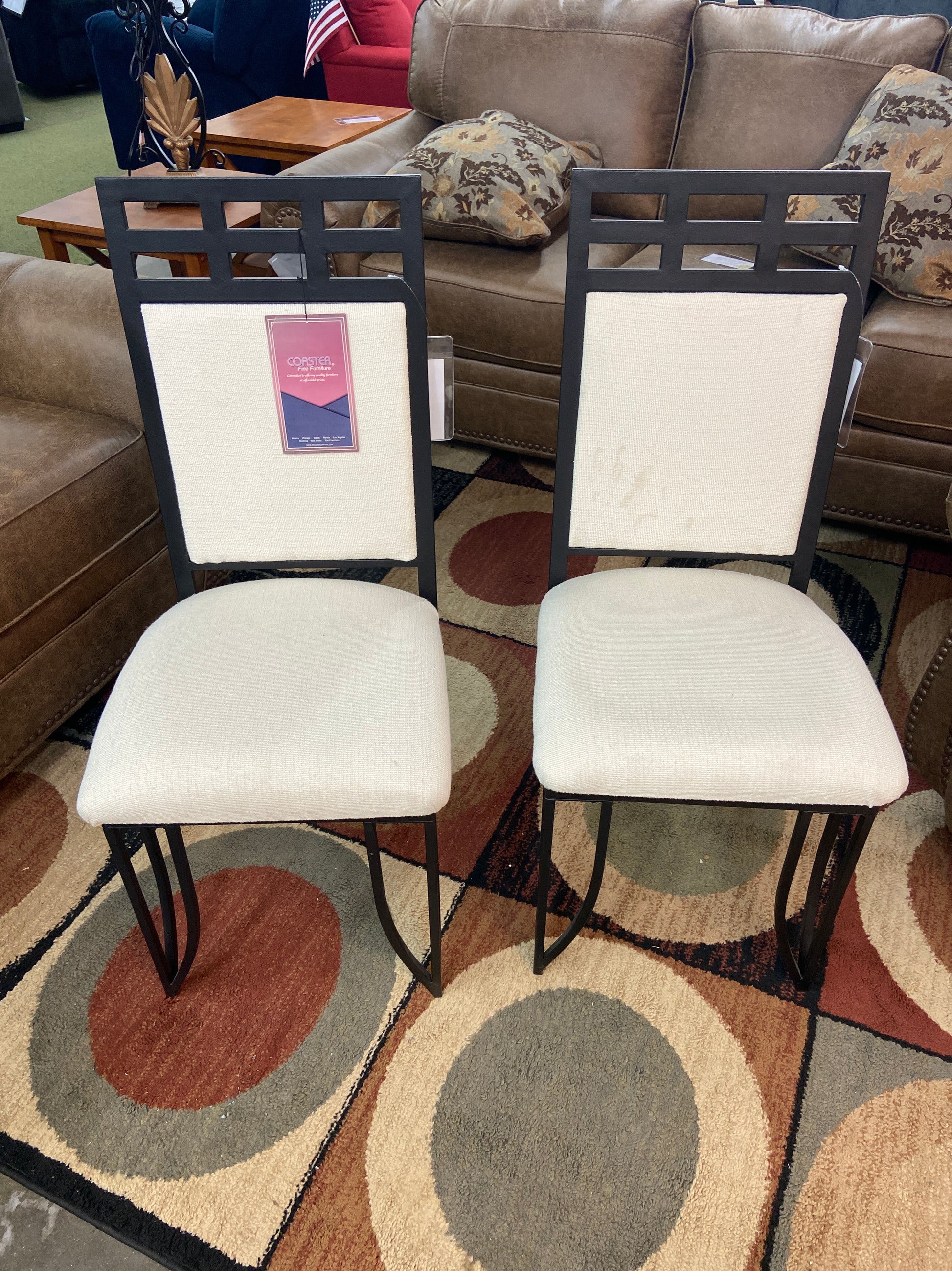 CHAIR;SIDE;BLACK METAL;WHITE UPHOLSTERED BAC AND SEAT; MUST BUY BOTH; SET OF 2